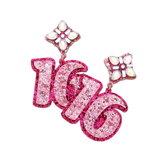 GS - Glitter "Bride Squad" Pink Champagne Bottle Earrings