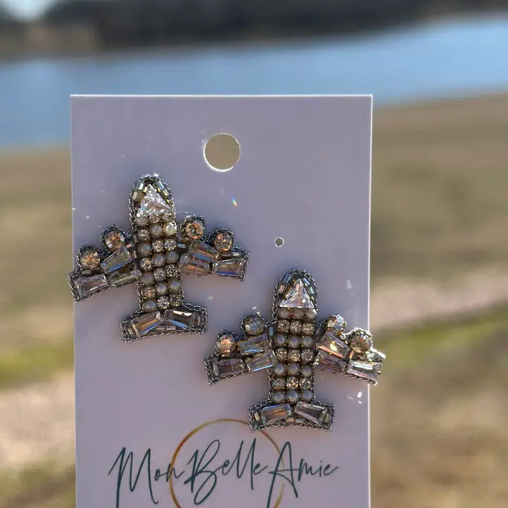 Take your style to new heights with our Catching Flights Airplane Stud Earrings! Designed for jet-setters and adventure lovers, these stunning studs feature a chic airplane shape adorned with silver, gold, and clear beads and jewels for the perfect touch of sparkle. Crafted with both elegance and comfort in mind, they come with a soft suede backing and hypoallergenic 18K gold-plated posts, making them ideal for all-day wear. Whether you’re boarding your next flight or simply dreaming of your next getaway, these earrings are the perfect accessory for any travel enthusiast!