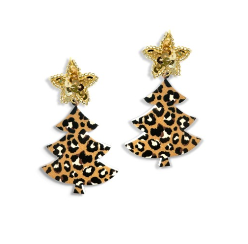 V&L - Cheetah Christmas Tree Acrylic Earrings
