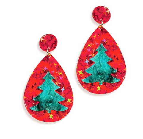 V&L - Red Christmas Tree Teardrop Acrylic Earrings